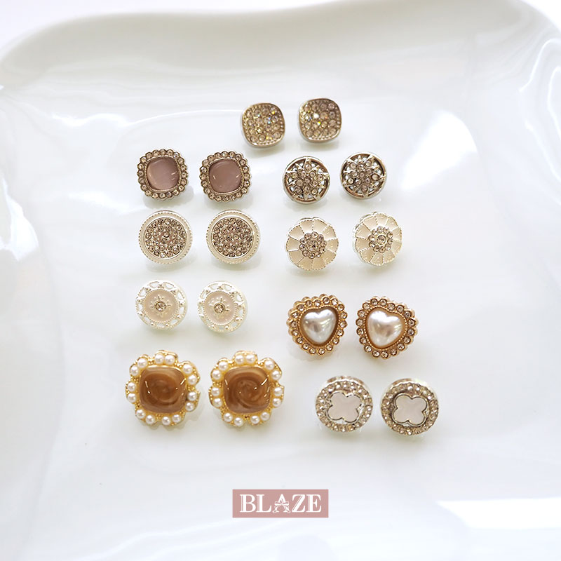 2個セット メタルボタン 11mm 12mm 15mm パール ストーン調 ゴールド シルバー ハート スクエア BLAZE ハンドメイド クラフト 手芸 金属 パーツ リメイク 飾り