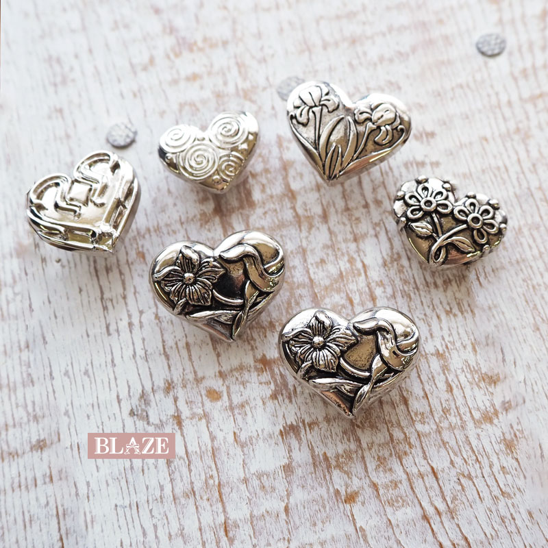 【スタッフのコメント】軽くて扱いやすいメタル風のデザインハートボタン