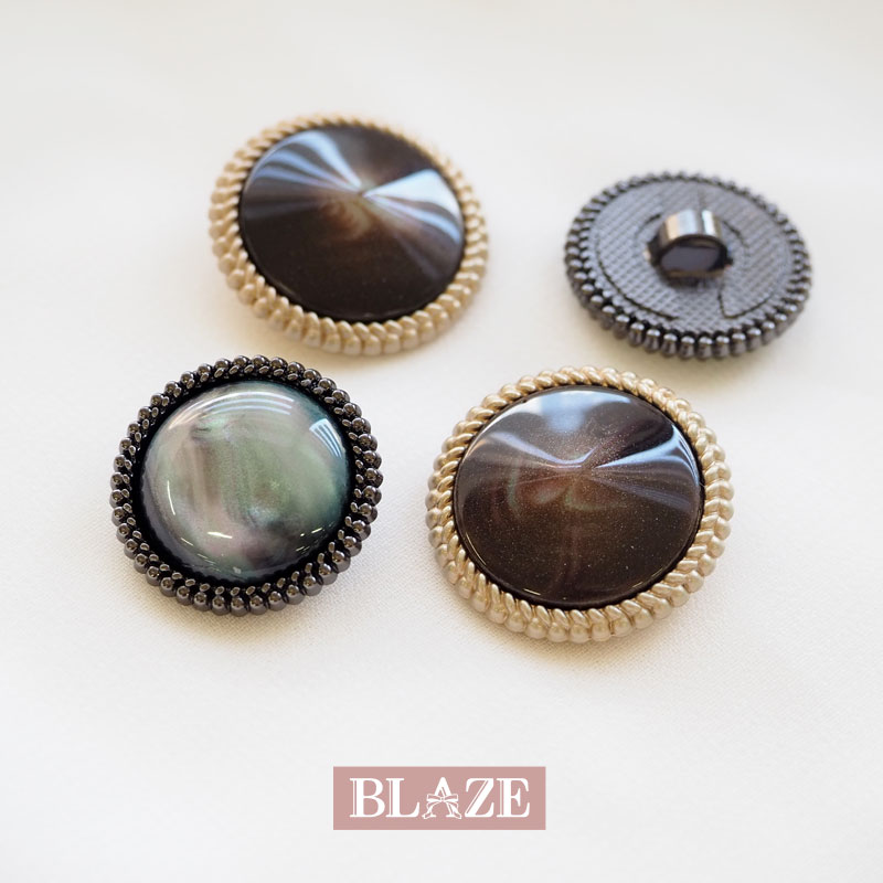 2個入り メタル ボタン 20mm 23mm オーロラ マーブル ストーン ブラック ゴールド BLAZE ハンドメイド クラフト 手芸 金属 パーツ 商用利用可能 付け替え