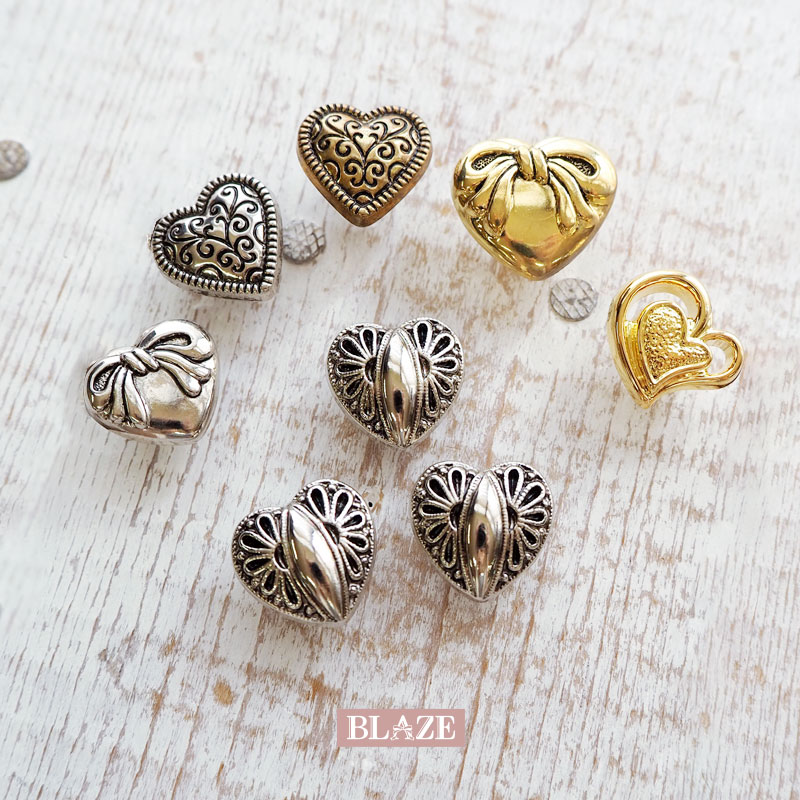 【スタッフのコメント】軽くて扱いやすいメタル風のデザインハートボタン