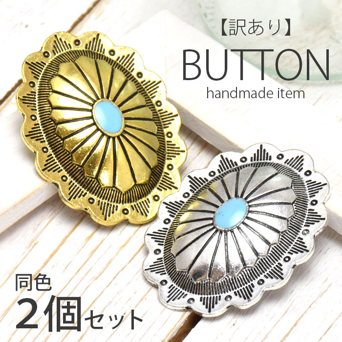 2個入り 訳あり コンチョ ボタン 46mm ターコイズ 楕円 BLAZE 商用利用可能 手芸 資材 素材 アレンジ リメイク 付け替え 飾りボタン おしゃれ シンプル 上品
