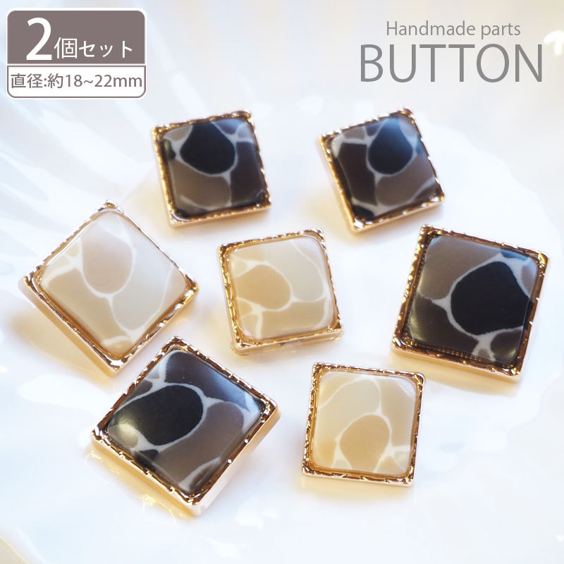 2個入り メタル ボタン 18mm 22mm ウェーブ模様 スクエア BLAZE ハンドメイド クラフト パーツ 商用利用可能 手芸 資材 素材 アレンジ 付け替え 洋服