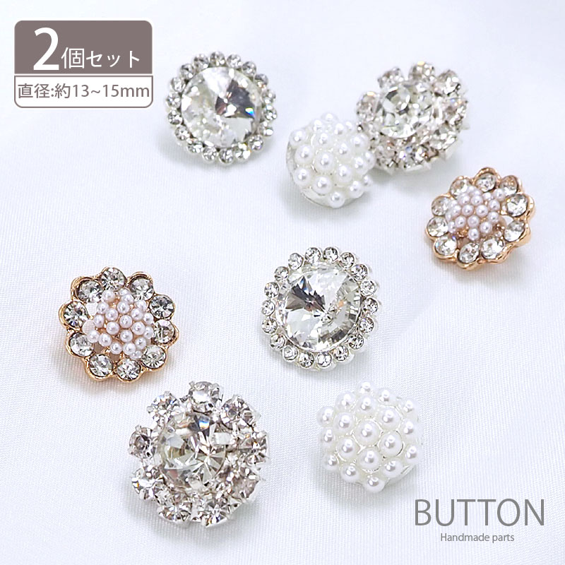 2個セット パール & ビジュー ボタン ミニ サイズ メタル BLAZE ハンドメイド アクセサリーパーツ デザイン 商用利用可能 クラフト アレンジ リメイク 付け替え
