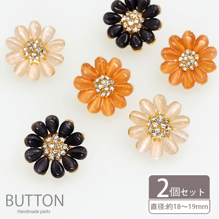 2個入り ビジュー ボタン 18mm 19mm フラワー キャッツアイ BLAZE ハンドメイド クラフト パーツ 飾りボタン デザイン 商用利用可能 アレンジ 付け替え 洋服