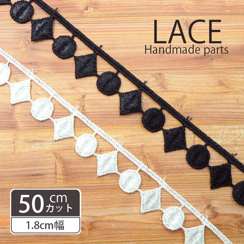 50cmカット ケミカルレース ラウンド&ダイヤ ブラック・ホワイト BLAZE ハンドメイド 商用利用可能 手芸 クラフト リメイク アレンジ 貼り付け 装飾 部材