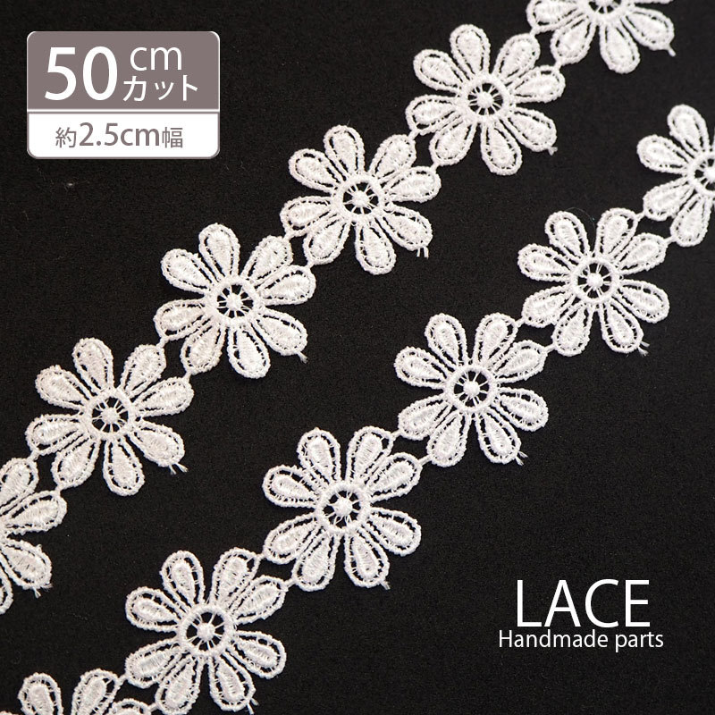 50cmカット ケミカル レース ホワイト フラワー 約2.5cm幅 BLAZE ハンドメイド クラフト 商用利用可能 ケミカルレース 手芸 資材 手作り 袖 襟 リボン 材料