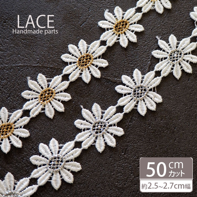 50cmカット 約25mm 27mm幅 ケミカルレース デイジー フラワー ゴールド & シルバー 刺繍 BLAZE ハンドメイド クラフト 商用利用可能 レース 手芸 手作り テープ