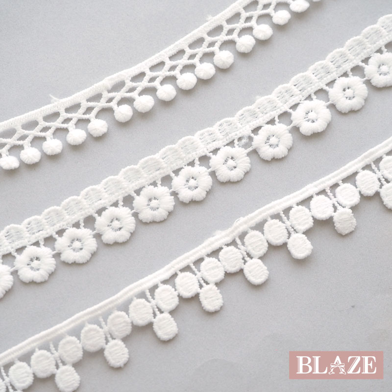 100cmカット デザインレース ケミカル ホワイト 15mm 17mm幅 ポンポン フラワー BLAZE ハンドメイド クラフト 手芸 手作り 商用利用可能 リメイク アレンジ
