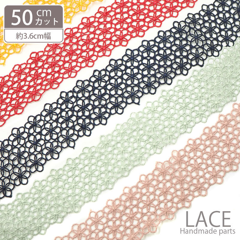 50cmカット カラーケミカルレース フラワーパターン 約36mm幅 BLAZE ハンドメイド 商用利用可能 クラフト 手芸 リメイク アレンジ 貼り付け かわいい おしゃれ