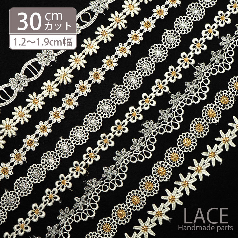 30cmカット ゴールド ミックス ケミカル レース ホワイト フラワー BLAZE ハンドメイド 商用利用可能 リボン テープ シルバー お花 手芸用レースインテリア 雑貨