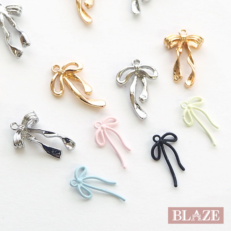 メタル チャーム りぼん ゴールド シルバー カラー リボン カン付き アクセサリー パーツ ハンドメイド クラフト 手芸 手作り キーホルダー ファスナー