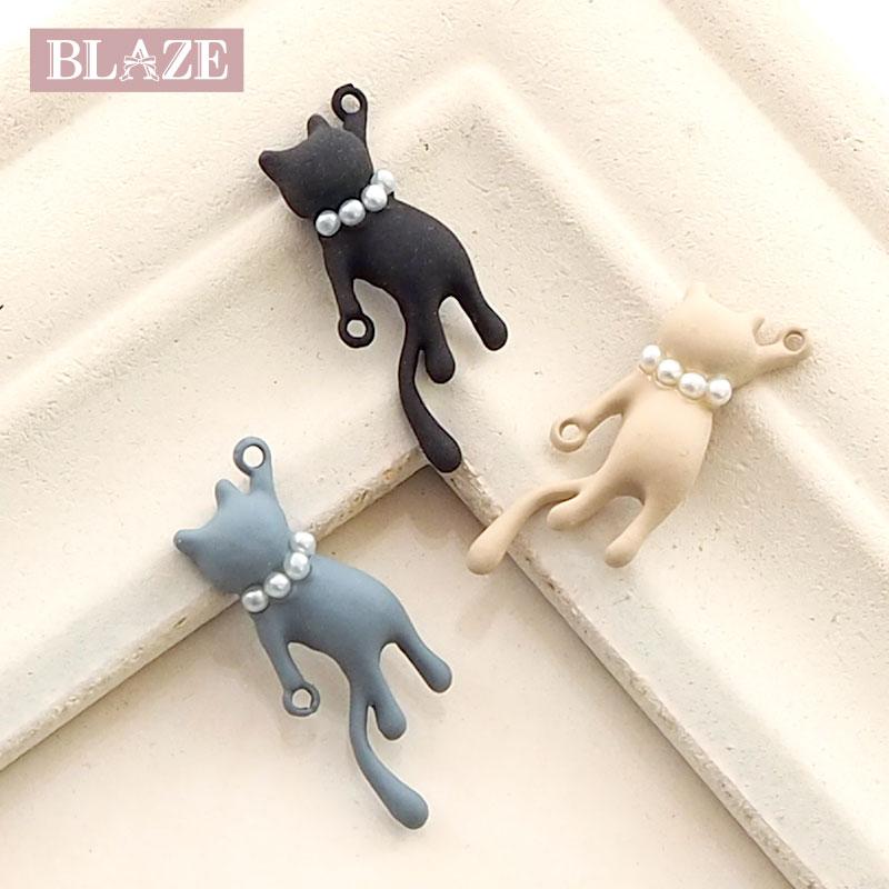 メタル チャーム 猫 ぶら下がり 両カン ネコ コネクター マットカラー カン付き ハンドメイド 手芸 クラフト 手作り アクセサリー アニマル 動物 DIY 素材 材料