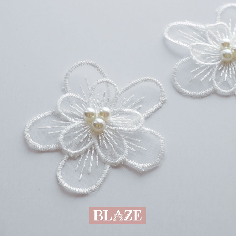 【2個セット】フラワー モチーフ オーガンジーレース ホワイト パール付き BLAZE ハンドメイド クラフト 手芸 手作り アクセサリー パーツ 商用利用可能 素材