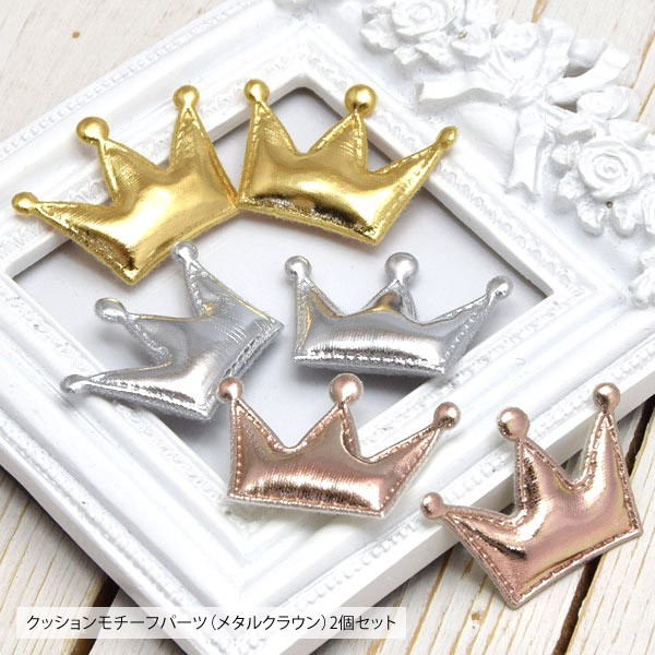 クッションモチーフパーツ メタル クラウン 2個セット 商用利用可能 ハンドメイド 手芸 アレンジ アクセサリーパーツ シンプル かっこいい おしゃれ 貼り付け