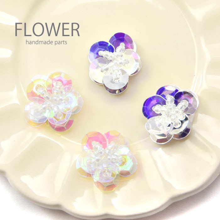 【パーツ アクセサリーパーツ デコ 貼り付け 花 フラワー スパンコール 造花 ピアス イヤリング】