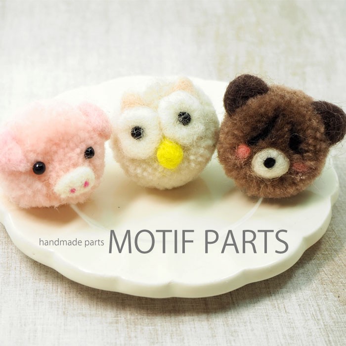 ポンポン もこもこ モチーフ パーツ アニマル BLAZE ハンドメイド くま ぶた ふくろう 商用利用可能 材料 リメイク アクセサリーパーツ 毛糸 羊毛 豚 熊 梟 動物