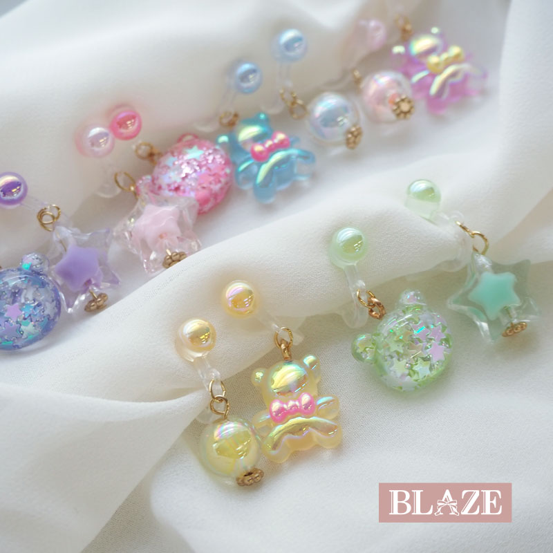 樹脂 イヤリング cute bear キッズ アクセサリー アシンメトリー おしゃれ 可愛い くま スター キラキラ パール 子ども イベント お出かけ BLAZE