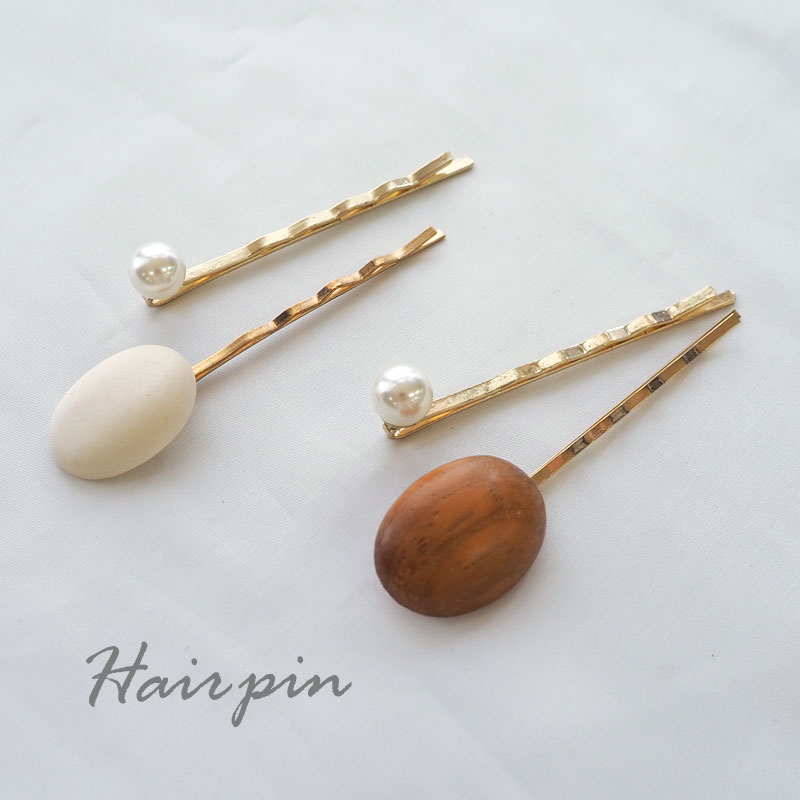 【スタッフのコメント】オーバル型のウッドパーツと一粒パールがおしゃれなヘアピンです。