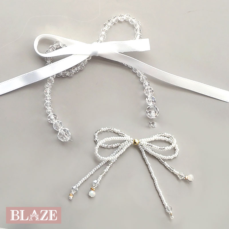 【スタッフのコメント】ビーズを丁寧に編み込んだ、存在感たっぷりのリボン型パーツ立体感のあるフォルムが作品の主役になってくれるので、バッグチャームやヘアアクセ、キーホルダーなどのワンポイントにぴったり。