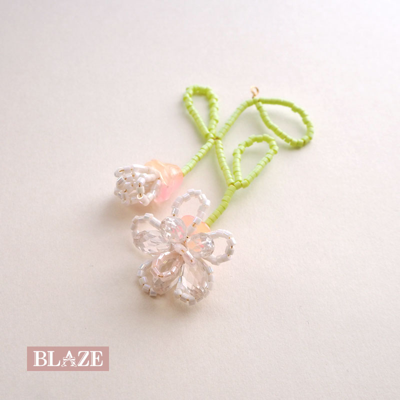 【スタッフのコメント】ビーズ編みの花がおしゃれなカン付きチャーム