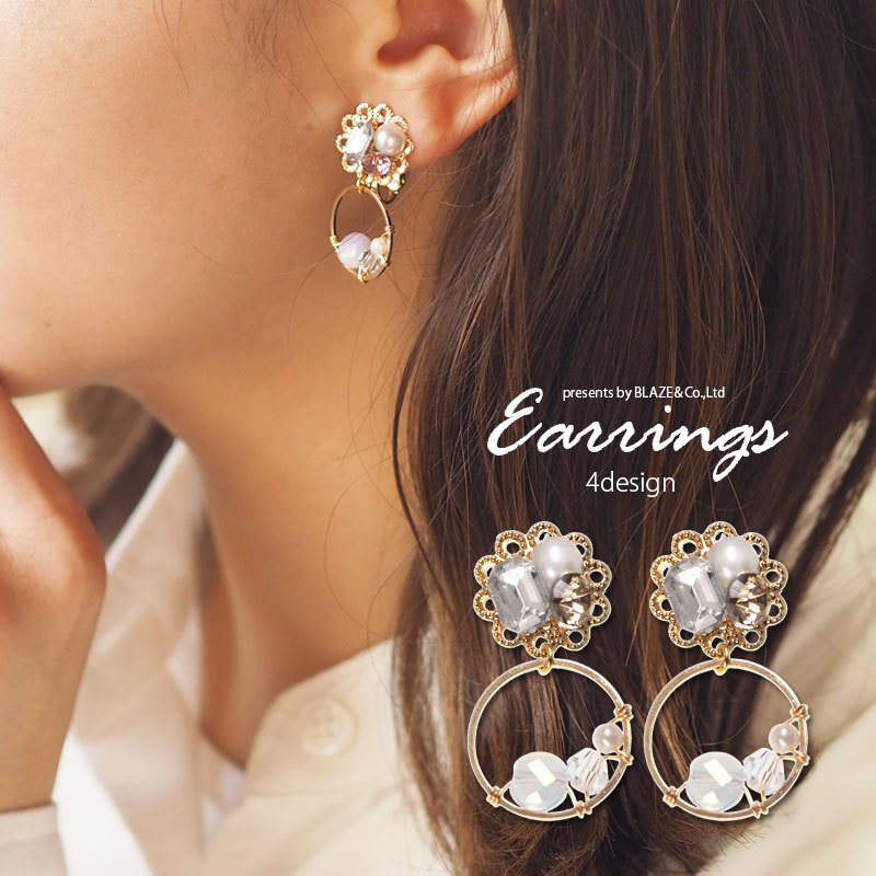 ピアス イヤリング ビジュー パール ビーズ ゴールド 透かしプレート 揺れる キラキラ 大人 BLAZE アクセサリー レディース ポスト ネジ式 オケージョン