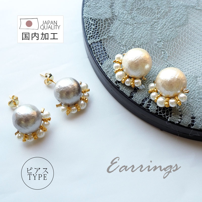 デザイン コットンパール ピアス 国産 BLAZE ハンドメイド 手作り アクセサリー パーツ カジュアル おしゃれ 両耳用 上品 シンプル 大人 レディース 真珠 ポスト