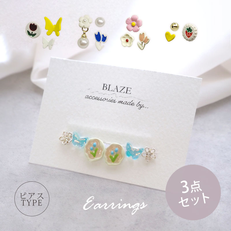 3種 ピアス セット 3デザイン 6点 フラワー 蝶 ハート アクセサリー ミニピアス 小さい 小さめ かわいい おしゃれ 花 ちょうちょ シンプル スタッド 大人 上品
