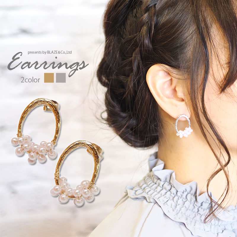 ピアス オーバル デザイン リング × パール ゴールド ・ シルバー BLAZE アクセサリー アクセ カジュアル 両耳用 大人 レディース ポスト オケージョン