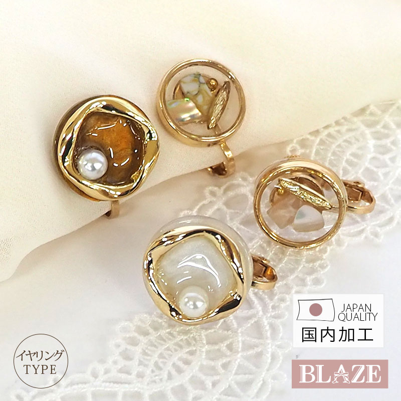 イヤリング ゴールド フレーム マーブル パール シェル 天然石 日本製 国産 国内製造 アクセサリー 大人 上品 かわいい おしゃれ レディース レジン ニュアンス