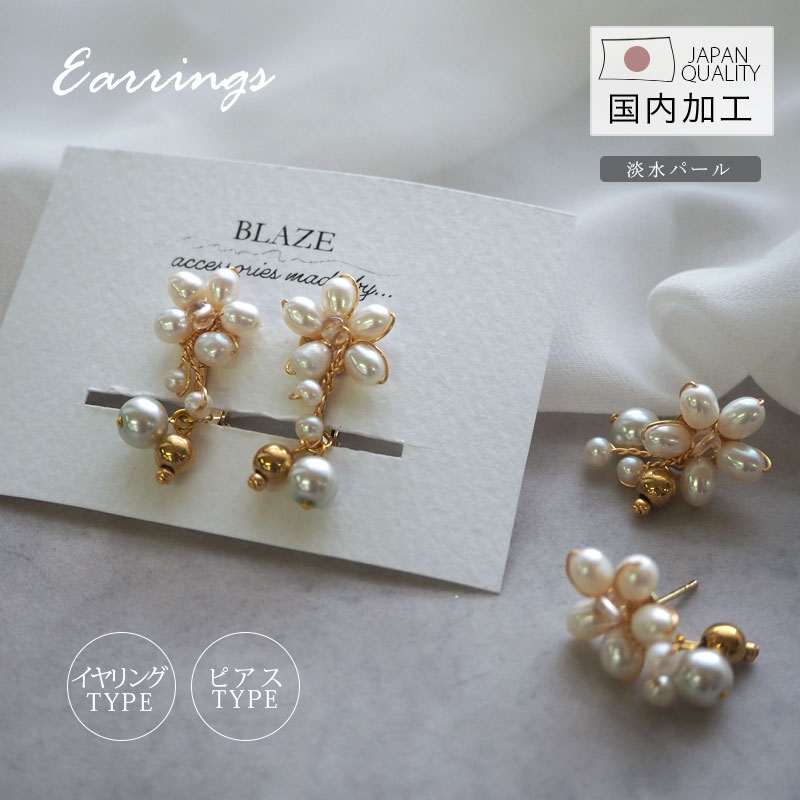 ピアス イヤリング 淡水パール フラワー 花 国産 日本製 スタッドピアス ネジバネ式 レディース 大人 綺麗 ゴールド デイリー カジュアル 普段使い 結婚式