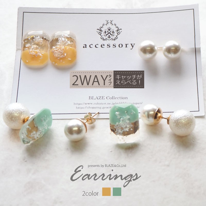 ピアス シェル入り ハーフカラーダイヤカットピアス & パールピアスセット + パールバックキャッチ付き BLAZE アクセサリー 2way レディース