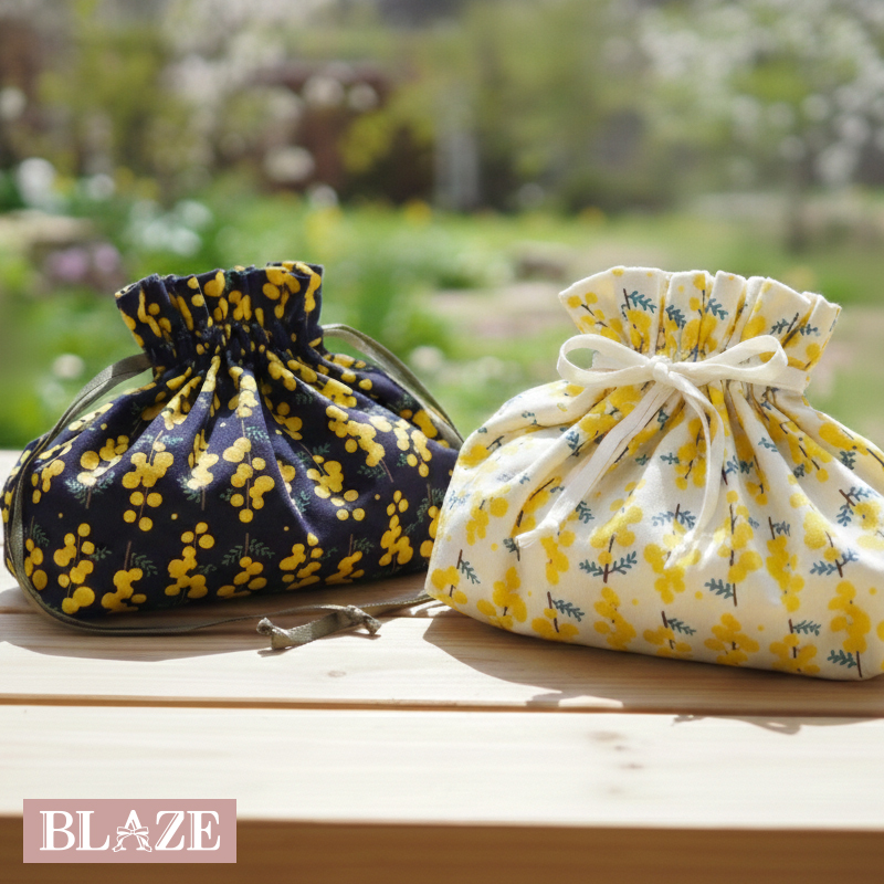 巾着 ポーチ ミモザ 花柄 大きめ マチ広 ランチポーチ バッグインバッグ かわいい おしゃれ 日本製 国産 フラワー ハンドメイド ギフト プレゼント BLAZE