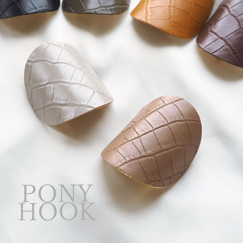 【スタッフのコメント】フェイクレザーが大人っぽくておしゃれなポニーフック。