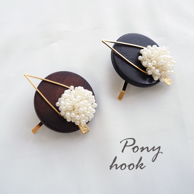 メール便送料無料 ポニーフック ウッド パールビーズ ゴールドパーツ ヘアフック ヘアアクセサリー 大人 ヘアゴム ヘアカフス ヘアカフ 韓国 約5cm BLAZE