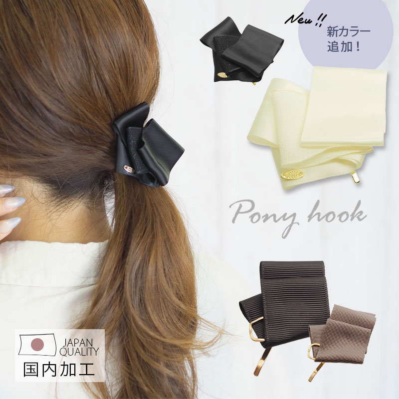 ポニーフック リボン グログラン サテン ゴールド プレート BLAZE 髪留め 髪飾り まとめ髪 ヘアフック ヘアカフ ヘアカフス ヘアゴム おしゃれ ヘアアクセサリー