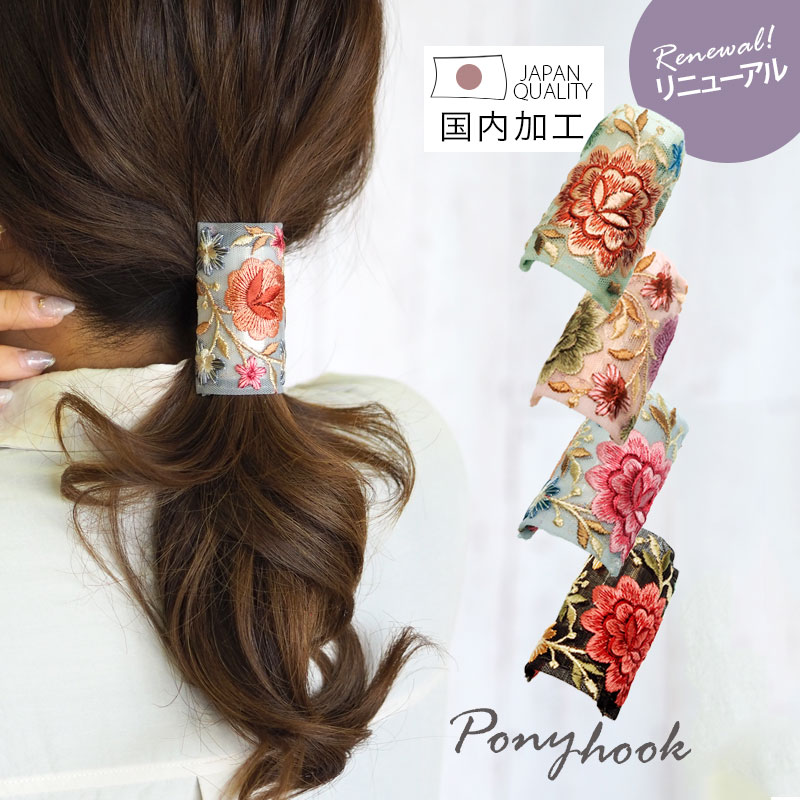 【スタッフのコメント】くすみカラー×刺繍が大人っぽくておしゃれなポニーフック。