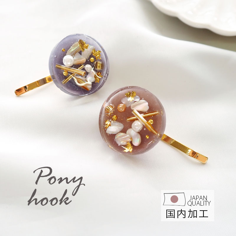 ポニーフック サークル 樹脂 パール シェル フラワー 花 ドライフラワー ゴールド ヘアアクセサリー まとめ髪 大人 ヘアフック ヘアゴム おしゃれ かわいい 国産