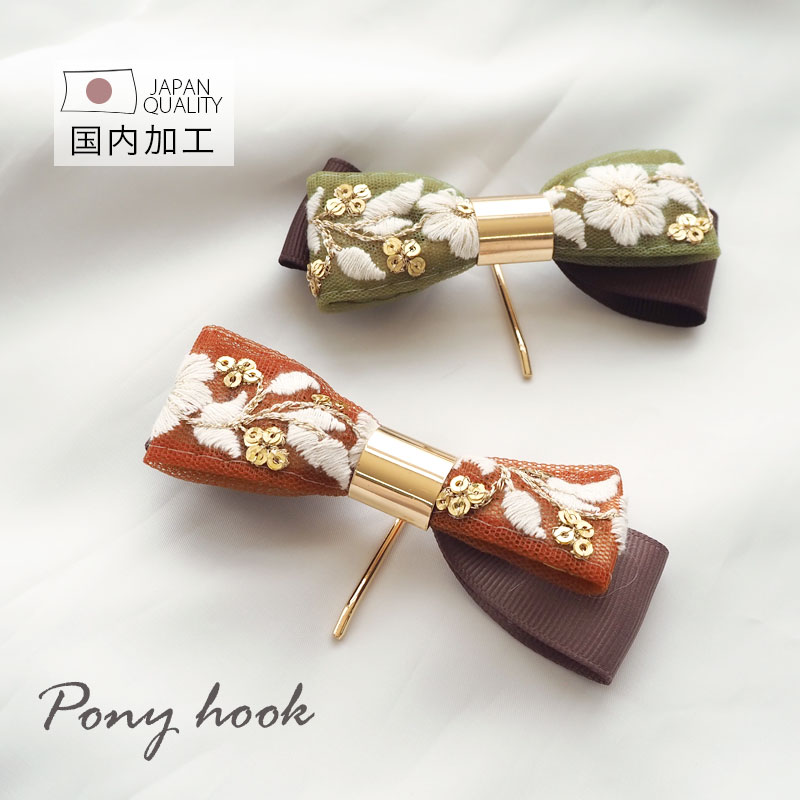 ポニーフック ダブル リボン インド刺繍 全2色 BLAZE ヘアフック ヘアーフック ヘアカフス ヘアゴム ヘアアクセサリー 髪留め 髪飾り まとめ髪 おしゃれ
