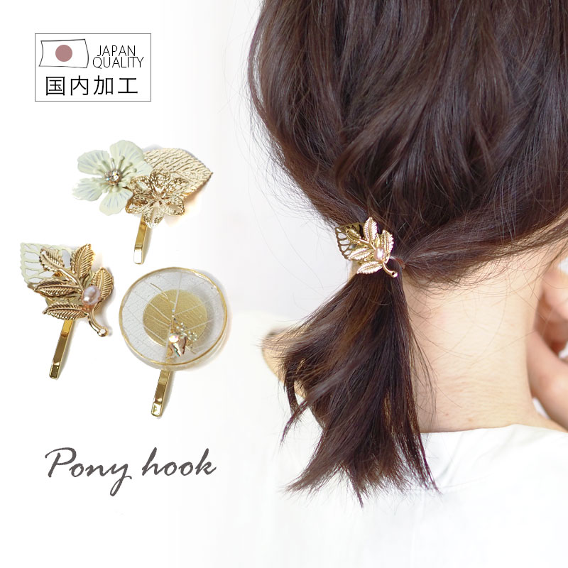 ポニーフック ヘアフック ヘアカフス ゴールド リーフ 花 パール フラワー ヘアゴム 大人 おしゃれ ヘアアクセサリー レディース 上品 エレガント かわいい
