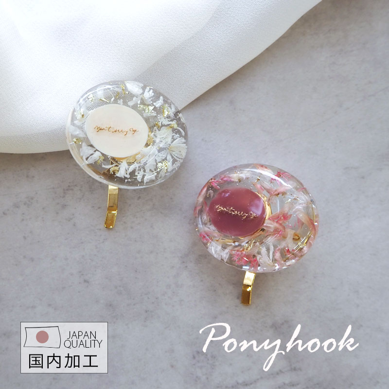 ポニーフック オーバル フラワー レジン 花 ドライフラワー ヘアフック ヘアカフ ヘアゴム 国産 日本製 ヘアピン クリア 透明 ヘアアクセサリー ヘアアレンジ