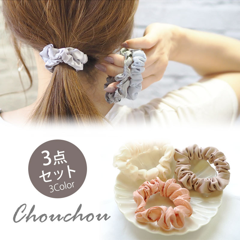 【スタッフのコメント】シンプルで使いやすいベーシックカラーのミニシュシュ3点セット。
