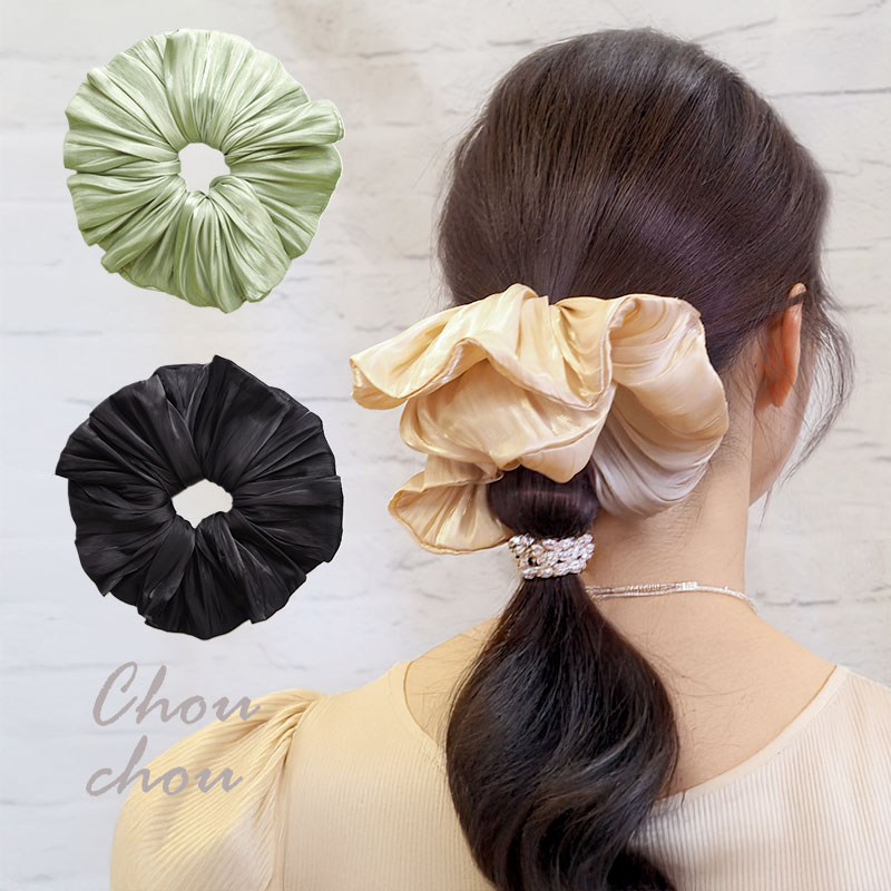 【スタッフのコメント】光沢感のあるサテン素材が、髪に上品なニュアンスを添えてくれるビッグシュシュ。