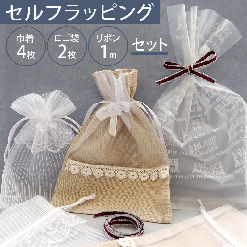 ラッピング セット 巾着袋 オーガンジー 生成り レース リボン BLAZE ハンドメイド クラフト 手芸 ギフト ディスプレイ バレンタイン ラッピング袋 雑貨 包装