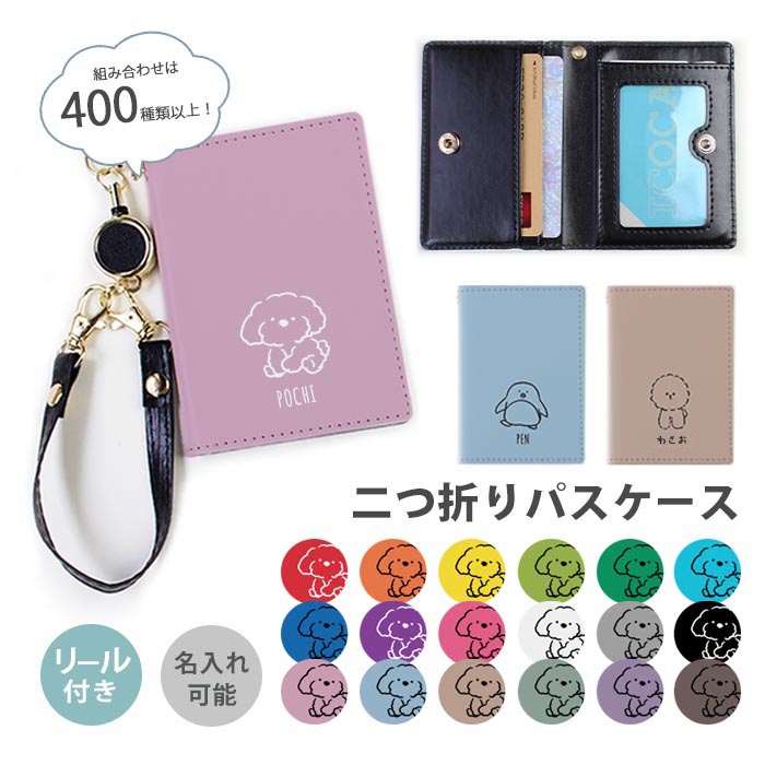 パスケース リール付き 名入れ 文字入れ 名前入れ ハングル文字 ひらがな 定期券入れ 二つ折 可愛い 2枚 3枚 定期入れ 二つ折り リールパスケース 動物アイコン