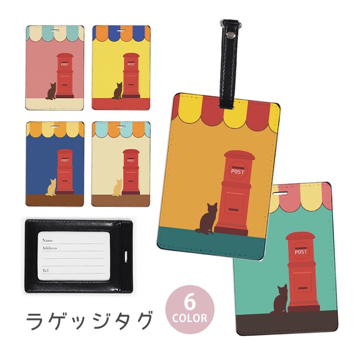 ラゲージタグ ラゲッジタグ 合皮 ネームタグ プリン 猫とポスト 郵便ポスト 丸ポスト 黒猫 レトロ 昭和レトロ おしゃれ かわいい トラベルアイテム 旅行雑貨