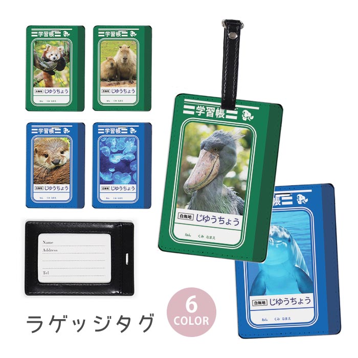 ラゲージタグ ラゲッジタグ 合皮 ネームタグ 自由帳 風 学習帳 風 ハシビロコウ レッサーパンダ イルカ おしゃれ かわいい トラベルアイテム 旅行雑貨