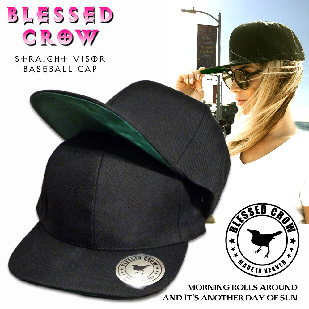 帽子 キャップ ブランド ロゴ タグ メンズ 大きめ 深め 春夏 ストレート フラットバイザー 黒 無地 BlessedCrow BaseballCap