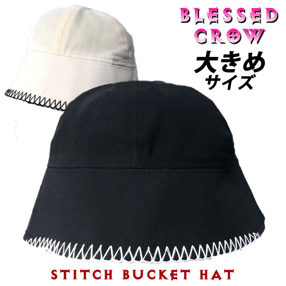 大きいサイズ ステッチ バケットハット メンズ 黒 白 帽子 春夏 秋冬