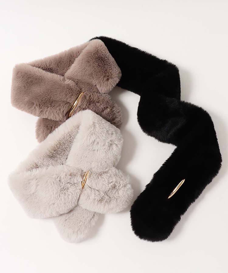 セール マフラー ティペット 差し込み レディース ファー おしゃれ かわいい シンプル 暖かい ふわもこ コーデ プレゼント リング付差し込みエコファーマフラー