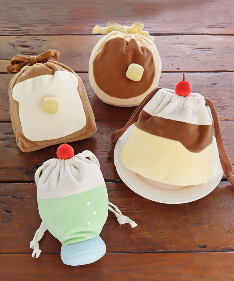 巾着袋 巾着ポーチ レディース 小物入れ ぬいぐるみ クリームソーダ パンケーキ プリン モチーフ ギフト プレゼント もちもち喫茶ダイカット巾着